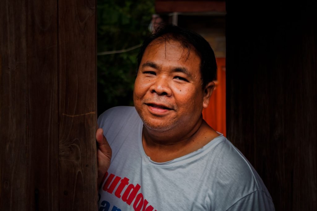 Thai hospitality. Friendly Thai citizen happy to help wearing a welcoming smile on his face.